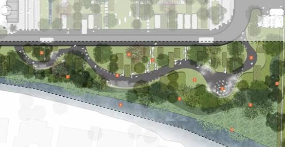 为充分利用场地条件,体现绿色建筑、节约世界资源,整体景观绿化设计引入场地海绵策略,绿地多设计为植草沟、下凹绿地,配置丰富的景观植物,呈现下凹式景观空间,有效收集降水并提高蒸发量,减少表径流;雨水花园部分设计为浅凹绿地,同时设有穿孔管收集雨水,溢流管以排除超出原有设计蓄水量的积水,汇聚井吸收来自屋顶或地面的雨水,利用植被、沙土的综合作用使雨水得到净化。下雨时吸水、蓄水、渗水、净水,需要时将蓄存的水“释放”并加以利用。